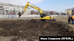 Огороженная стройплощадка сквера. Там, где раньше стояла "Зимняя вишня"