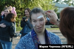 Под музыку артисты распределили между собой реквизит и нанесли "боевой раскрас", чтобы войти в образ и не отвлекаться во время выступления, не стесняться возможных зрителей.