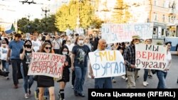 Между тем, митинг 21 -го июля продлился в Хабаровске до позднего вечера. И завершился требованием отставки президента РФ "в связи с утратой доверия". Такой призыв во время хабаровских протестов прозвучал впервые. "20 лет – доверия нет!", "Путина – в отставку!", "Мы не сдадимся!", "Мы здесь власть!", – скандировали митингующие.