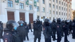 На Соборной площади собрались около полутора тысяч человек, среди них очень много молодых. Несмотря на сильный мороз, никто не расходится, люди скандируют "Отравителей в тюрьму", "Путин вор", "Свободу Навальному". Напротив них стоит оцепление из полицейских.