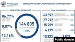 Россияне написали почти 145 тысяч доносов за полгода 2022-го. Об этом сообщает "Интефакс" со ссылкой на данные Роскомнадзора.